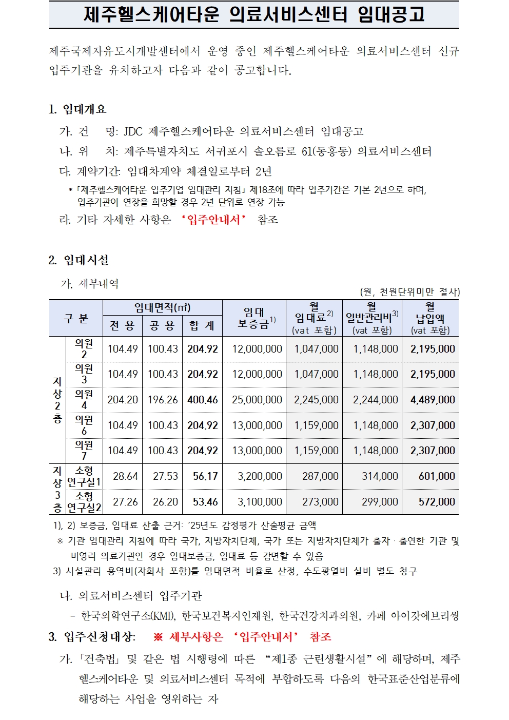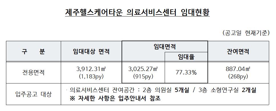 제주국제자유도시개발센터 제주헬스케어타운 의료서비스센터 임대공고