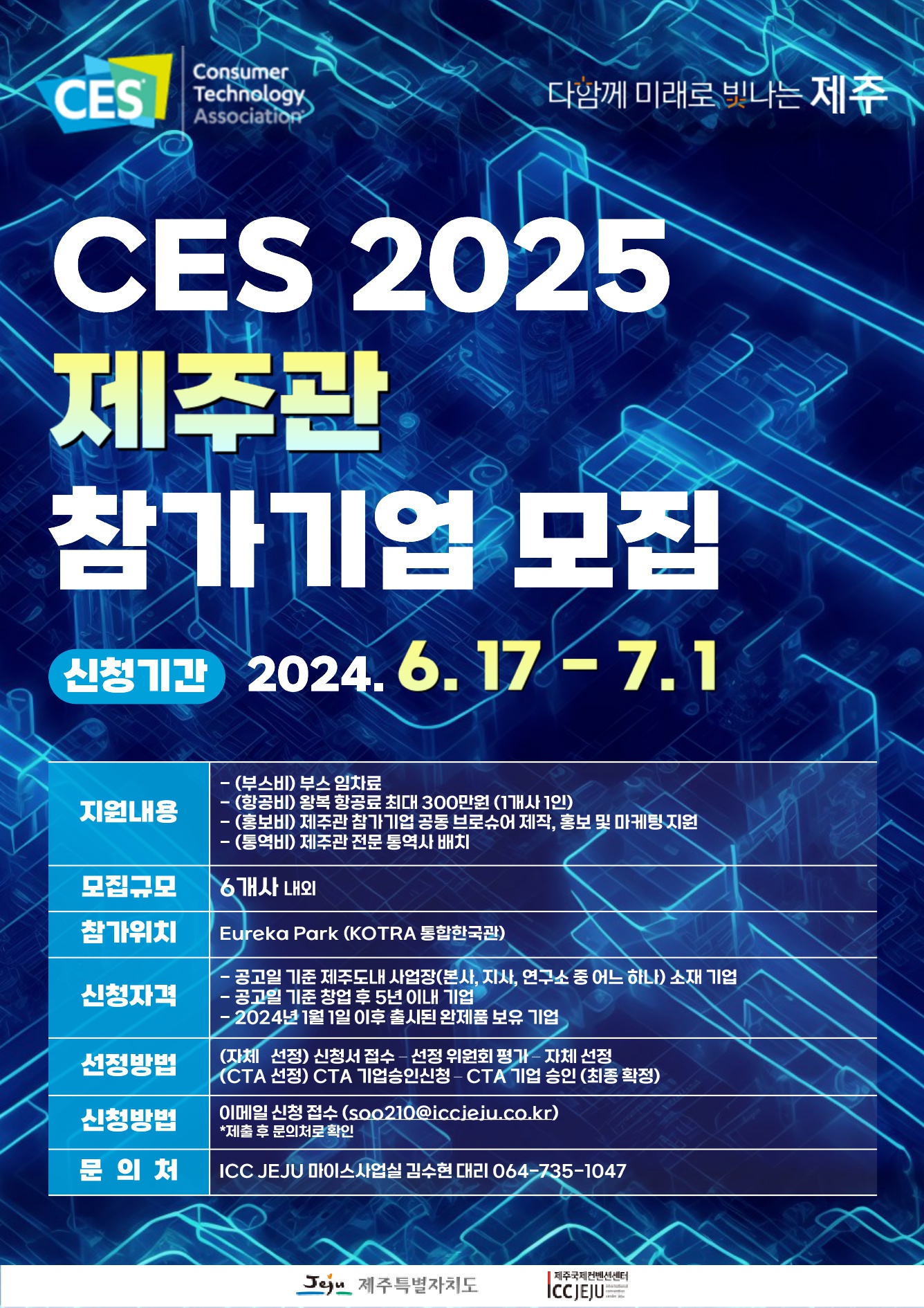 [제주특별자치도] CES 2025 제주관 참가기업 모집 공고