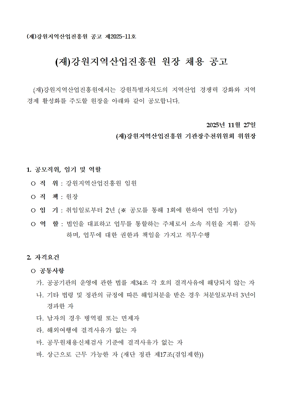 01. (강원_공고문) 강원지역산업진흥원 원장 채용 공고.hwp